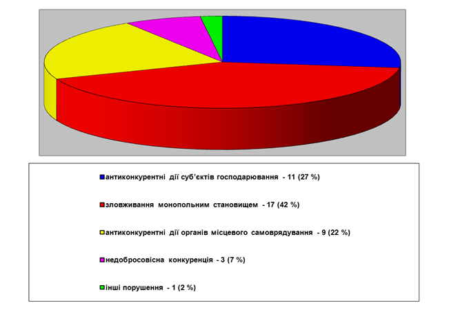 - 8 порушень у вигляді антиконкурентних дій органів місцевого самоврядування,