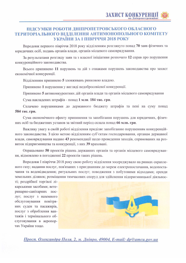 Голова Запорізького обласного територіального відділення Антимонопольного комітету України Білий О. М. підвів підсумки діяльності відділення за результатами першого півріччя 2018 року.