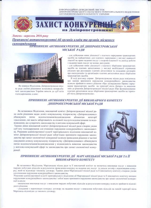 ВИКОНАВЧИЙ КОМІТЕТ ДНІПРОПЕТРОВСЬКОЇ (ДНІПРОВСЬКОЇ) МІСЬКОЇ РАДИ ЗОБОВ'ЯЗАНО ПРИПИНИТИ ПОРУШЕННЯ КОНКУРЕНЦІЙНОГО ЗАКОНОДАВСТВА