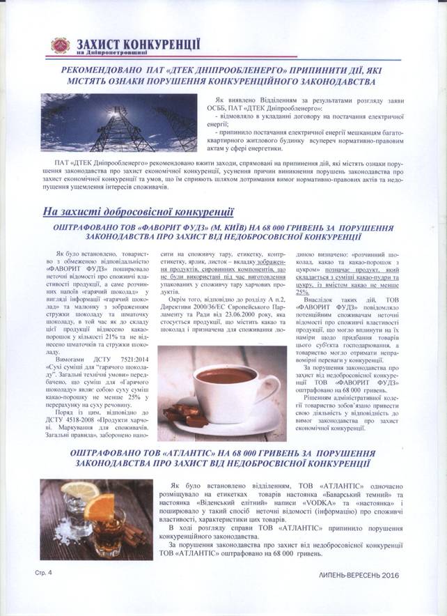 Порядок денний засідання адміністративної колегії Дніпропетровського обласного територіального відділення Антимонопольного комітету України 11 жовтня 2016 року