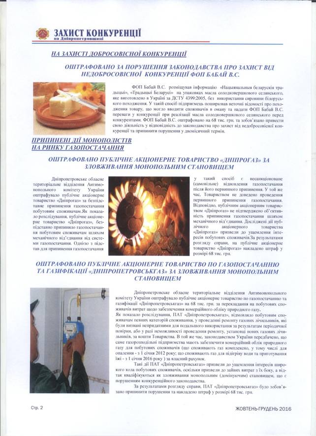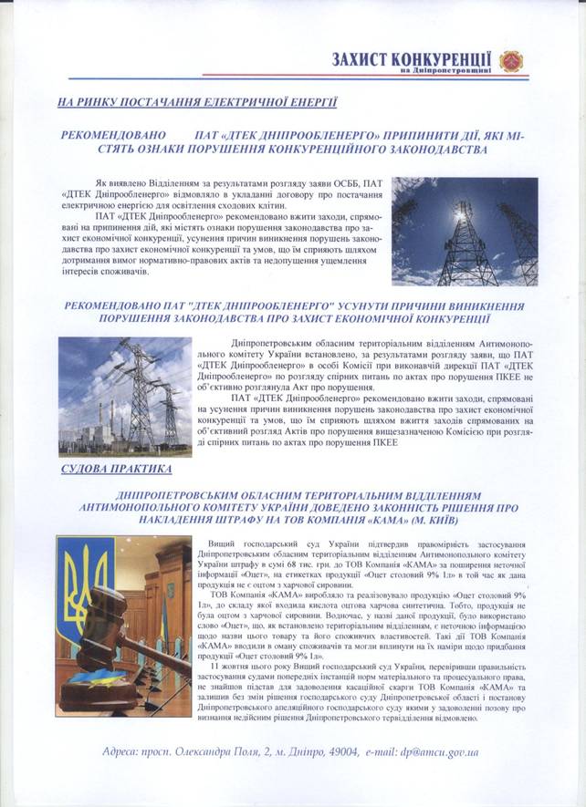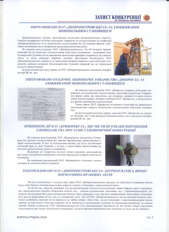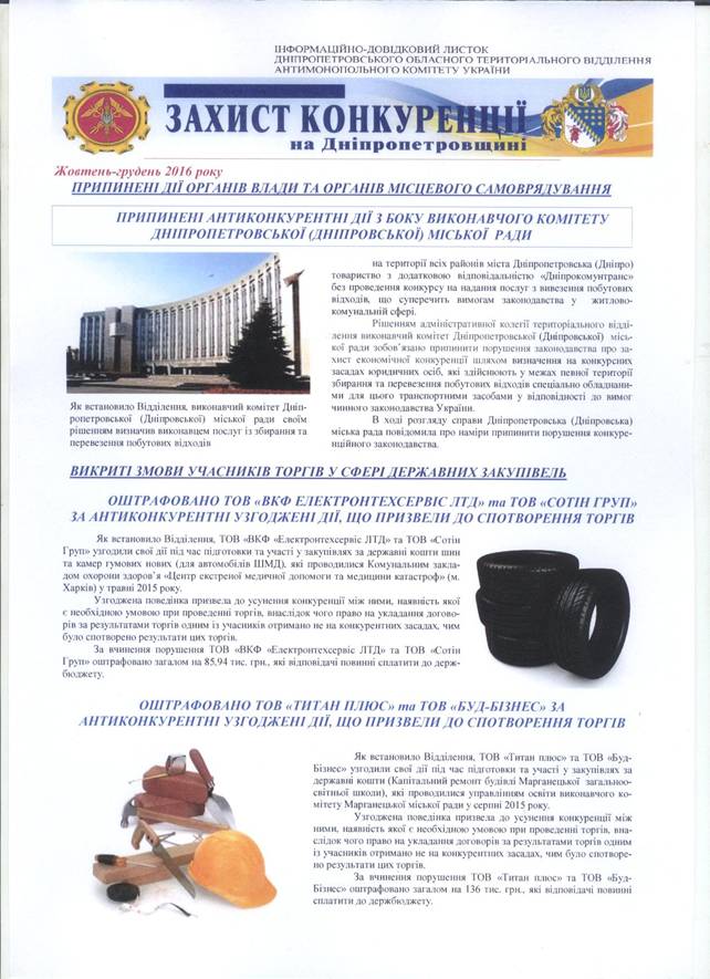 Порядок денний засідання адміністративної колегії Дніпропетровського обласного територіального відділення Антимонопольного комітету України 12 січня 2017 року