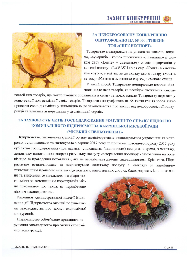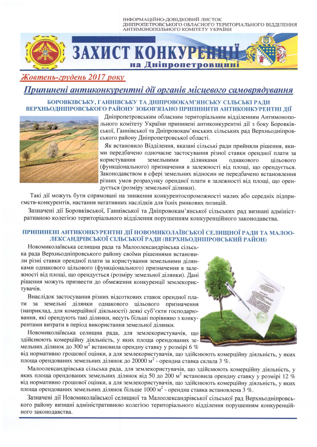 ПІДСУМКИ РОБОТИ ЗАПОРІЗЬКОГО ОБЛАСНОГО ТЕРИТОРІАЛЬНОГО ВІДДІЛЕННЯ АНТИМОНОПОЛЬНОГО КОМІТЕТУ УКРАЇНИ У 2017 РОЦІ