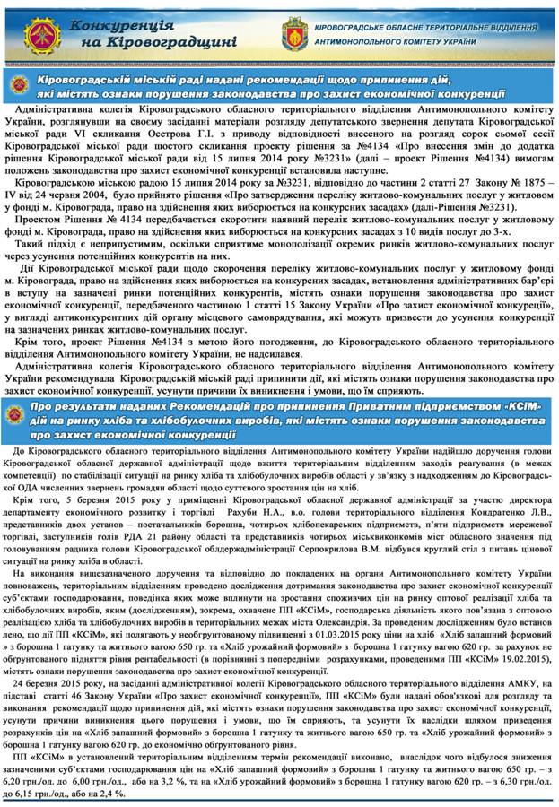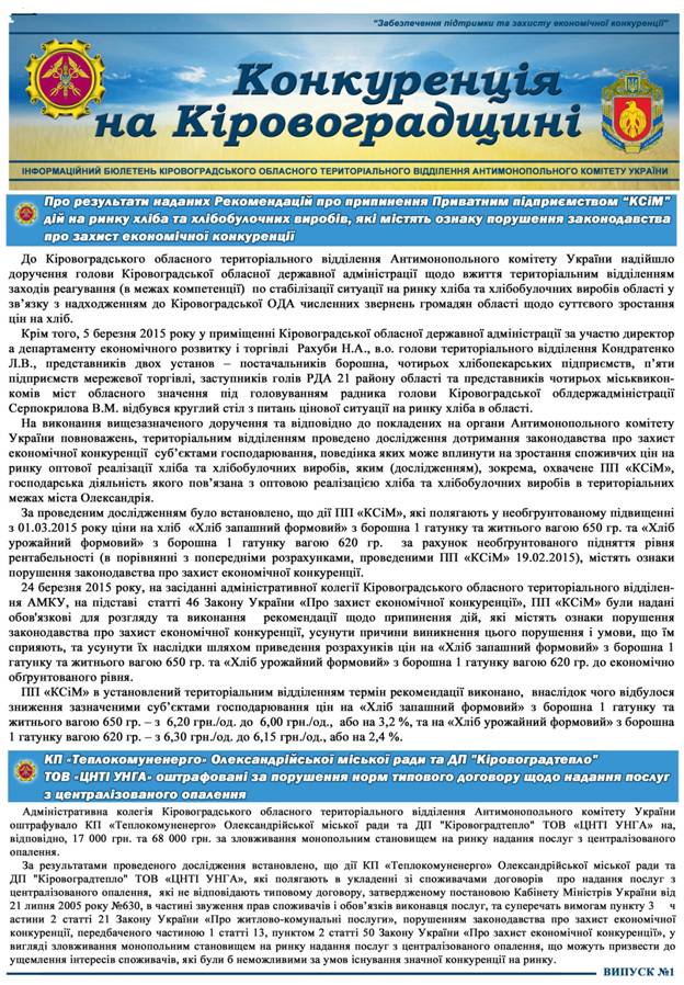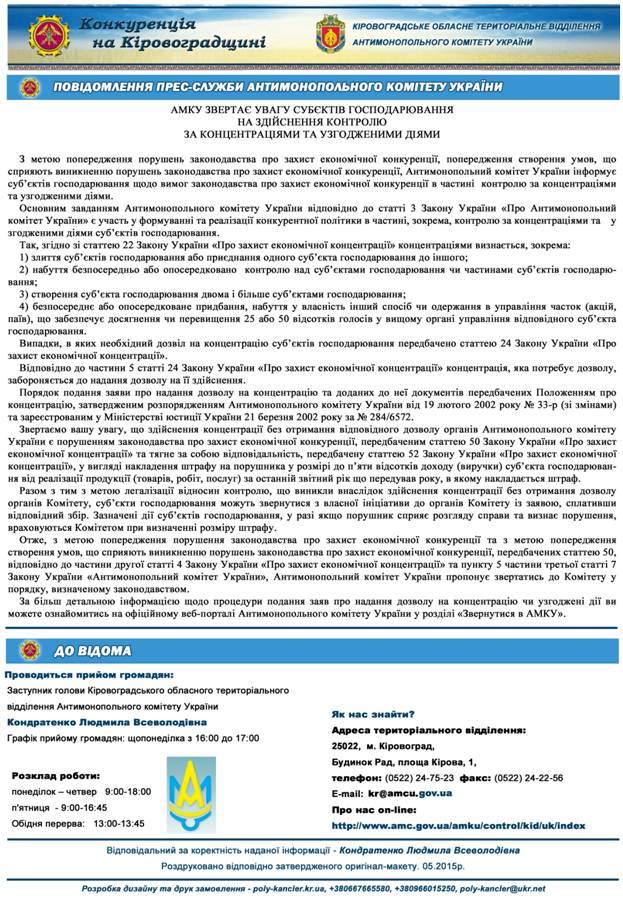 ПРО ПРОВЕДЕННЯ ДНЯ ВІДКРИТИХ ДВЕРЕЙ З ПИТАНЬ ЗАХИСТУ КОНКУРЕНЦІЇ В М. КІРОВОГРАДІ