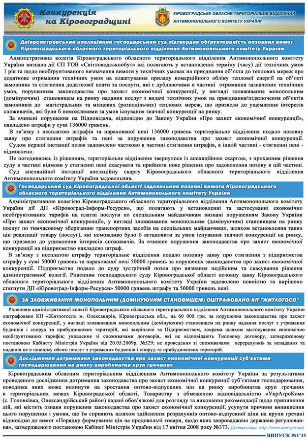 Інформація про попередні висновки у справі про порушення законодавства про захист економічної конкуренції № 03/01-15 та розгляд зазначеної справи на засіданні адміністративної колегії Запорізького обласного територіального відділення Антимонопольного комітету України